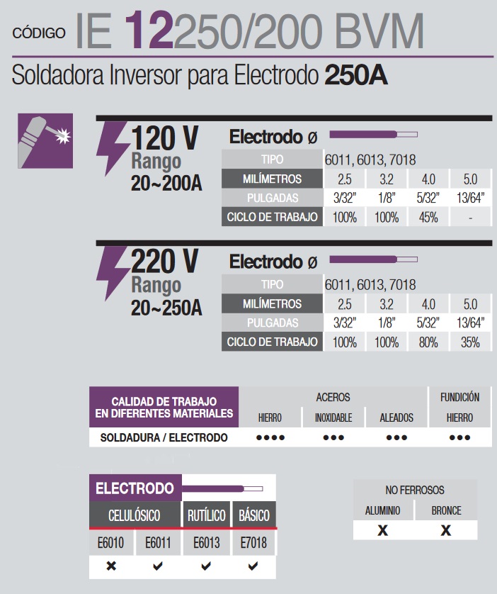 56V Voltaje en vacío 2980 W Potencia Amperi