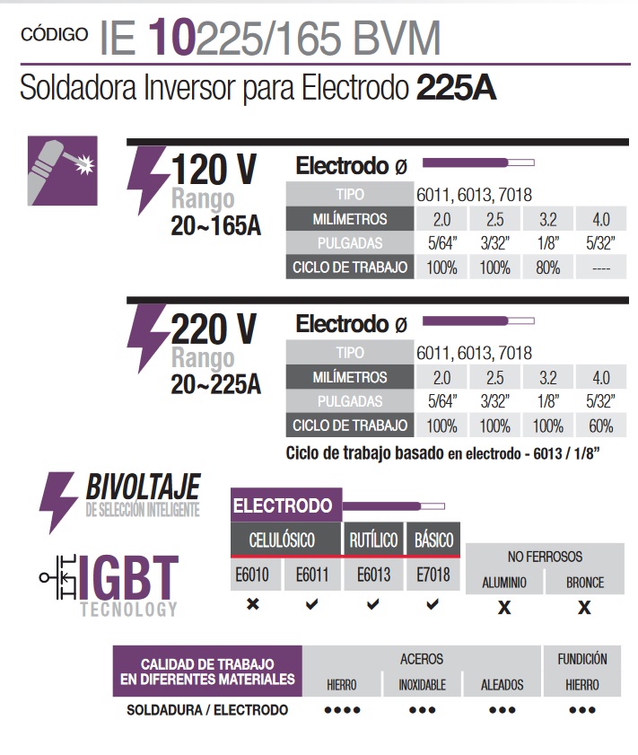 56V Voltaje en vacío 2980 W Potencia Amperi