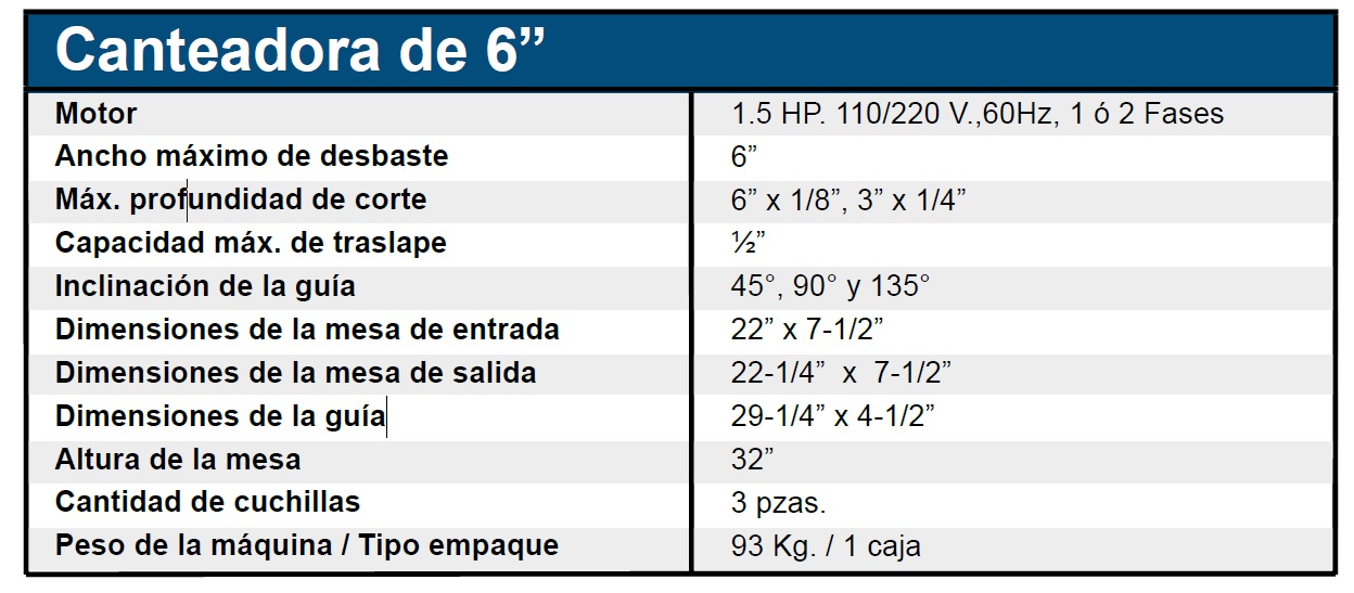 Motor: 1.5 HP 110/220 V 60 Hz 1 ó 2 fase