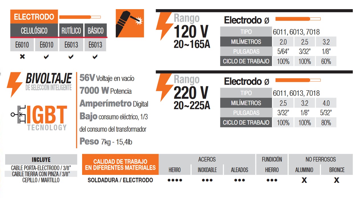 56V Voltaje en vacío 5340 W Potencia Bajo consumo