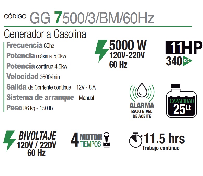 Frecuencia 60hz Potencia máxima 3,3Kw Potencia co