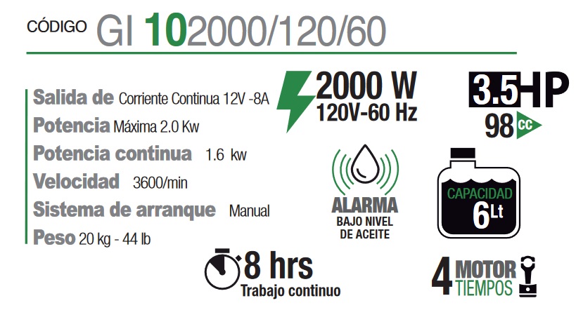 Frecuencia 60hz Potencia máxima 3,3Kw Potencia co