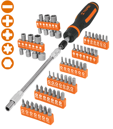 Juego de desarmador tipo matraca, 58 piezas