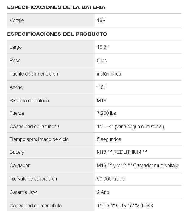 Capacidad: 1/2" - 4" cobre, acero de 1/2" - 2"