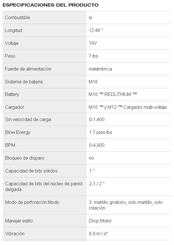 Motor sin escobillas POWERSTATE ™: proporciona 1,7 pies-lbs de energía de impacto, 0-1,400 RPM y 0-4,900 BPM Paquetes de baterías REDLITHIUM ™ XC5.0: proporcionan trabajo durante todo el día con una carga, 20% más de energía y 2 veces más de recarga que las baterías de iones de litio estándar