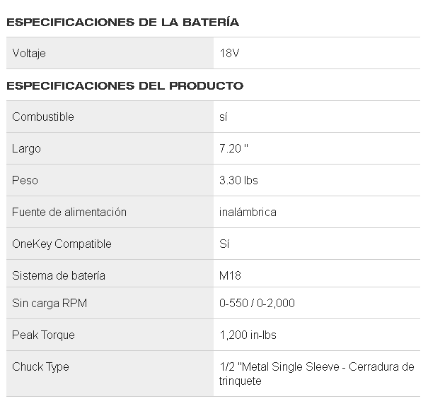 Motor sin carbones POWERSTATE ™: ofrece 1.200 libras por pulgada de torque máximo y hasta 2.000 rpm para velocidades de perforación más rápidas