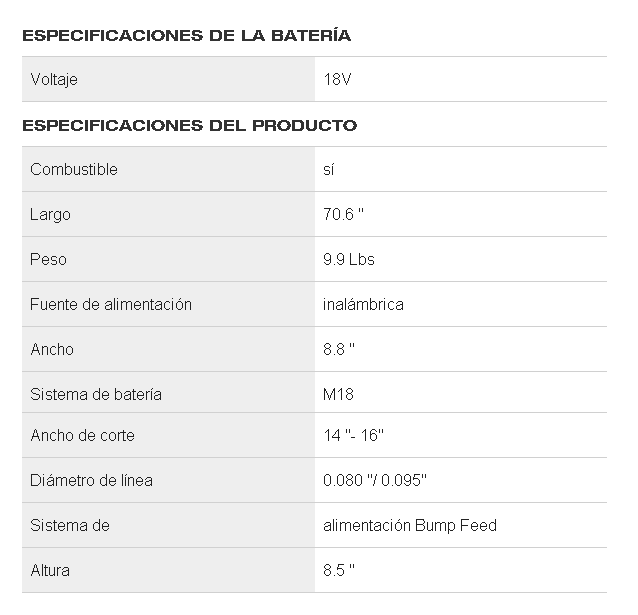 La cabeza de tamaño completo tiene más línea y tiene un botón de refuerzo reforzado de metal para una vida más larga. La recortadora de hilo M18 FUEL ™ es totalmente compatible con más de 150 soluciones en el sistema M18 ™.