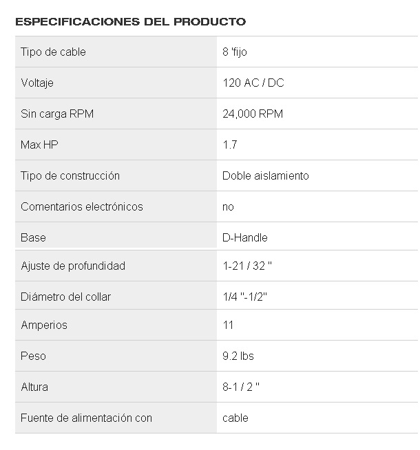 Tanto los ajustes gruesos como los microfinos son rápidos y precisos.Motor 1-3 / 4 HP máx., 11 A, 24,000 RPM Milwaukee