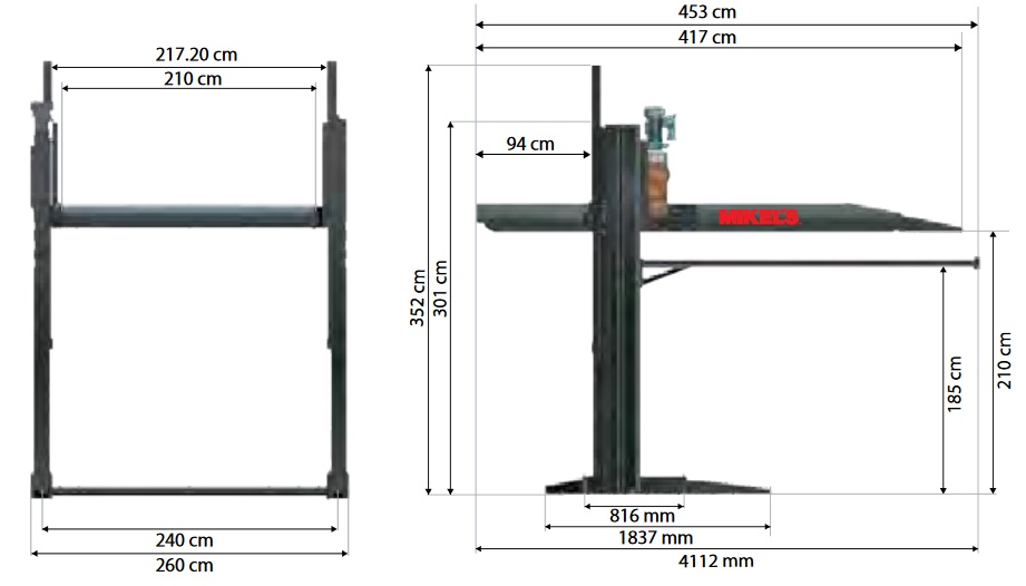 Elevador Eletro-Hidraulico de 2 postes asimétrico