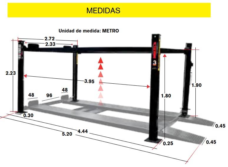 Rampa elevadora para estacionamiento 4 postes