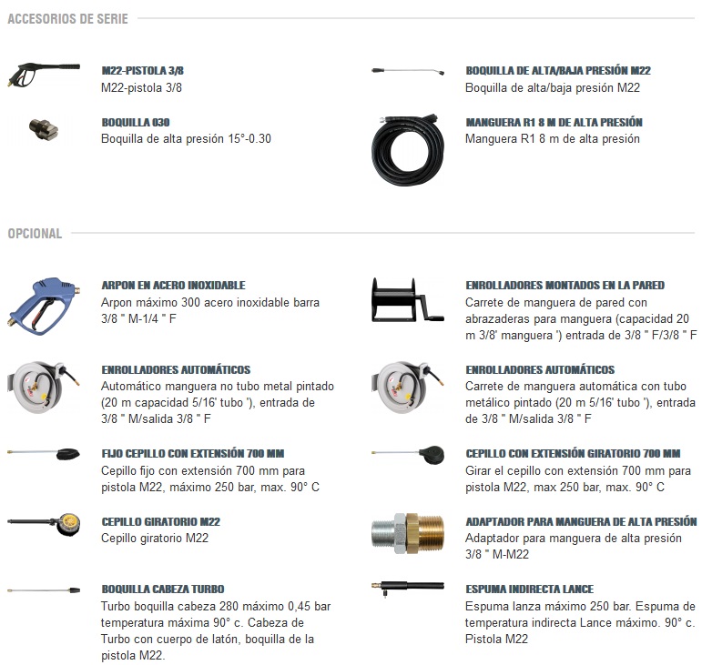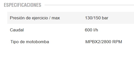 Bomba axial con tres pistones en acero con recubrimiento cerámico, cabezal en latón y válvula de by-pass incorporadaVálvulas de aspiración y salida en acero inoxidable