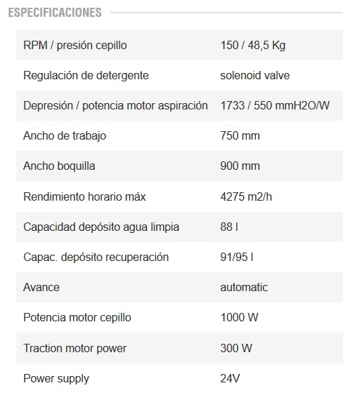 Panel de control con mandos de fácil uso, regulador velocidad de avance, selector función de lavado y aspirado, indicador de nivel de carga de la baterÃa con acción inhibitoria progresiva en la función del cepillo, aspiración y tracción, indicador del sentido de la marcha, llave de encendido general