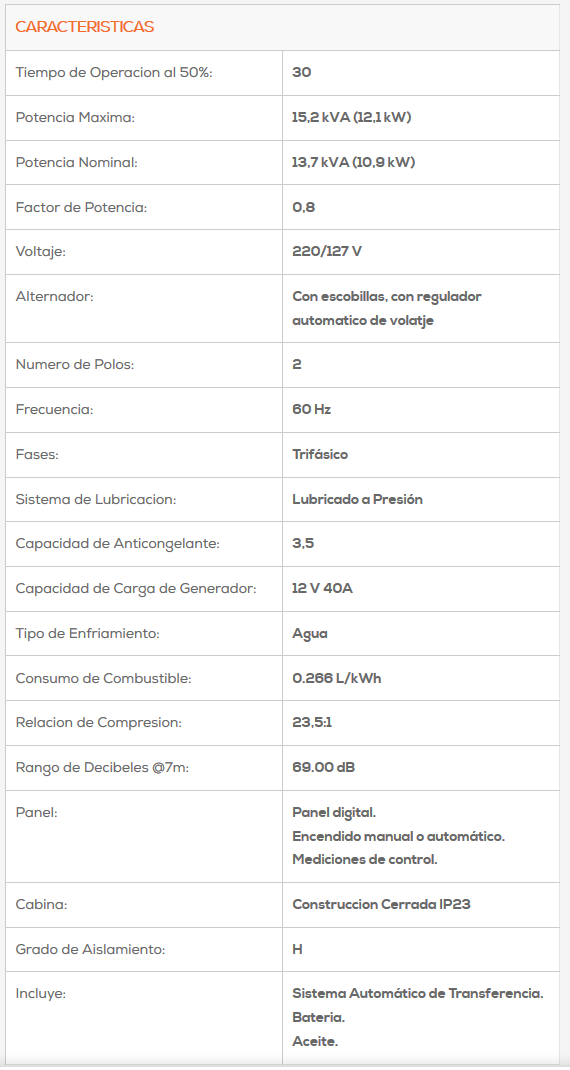 Energía de respaldo en la industria, comercios, restaurantes, oficinas, clínicas, etc.