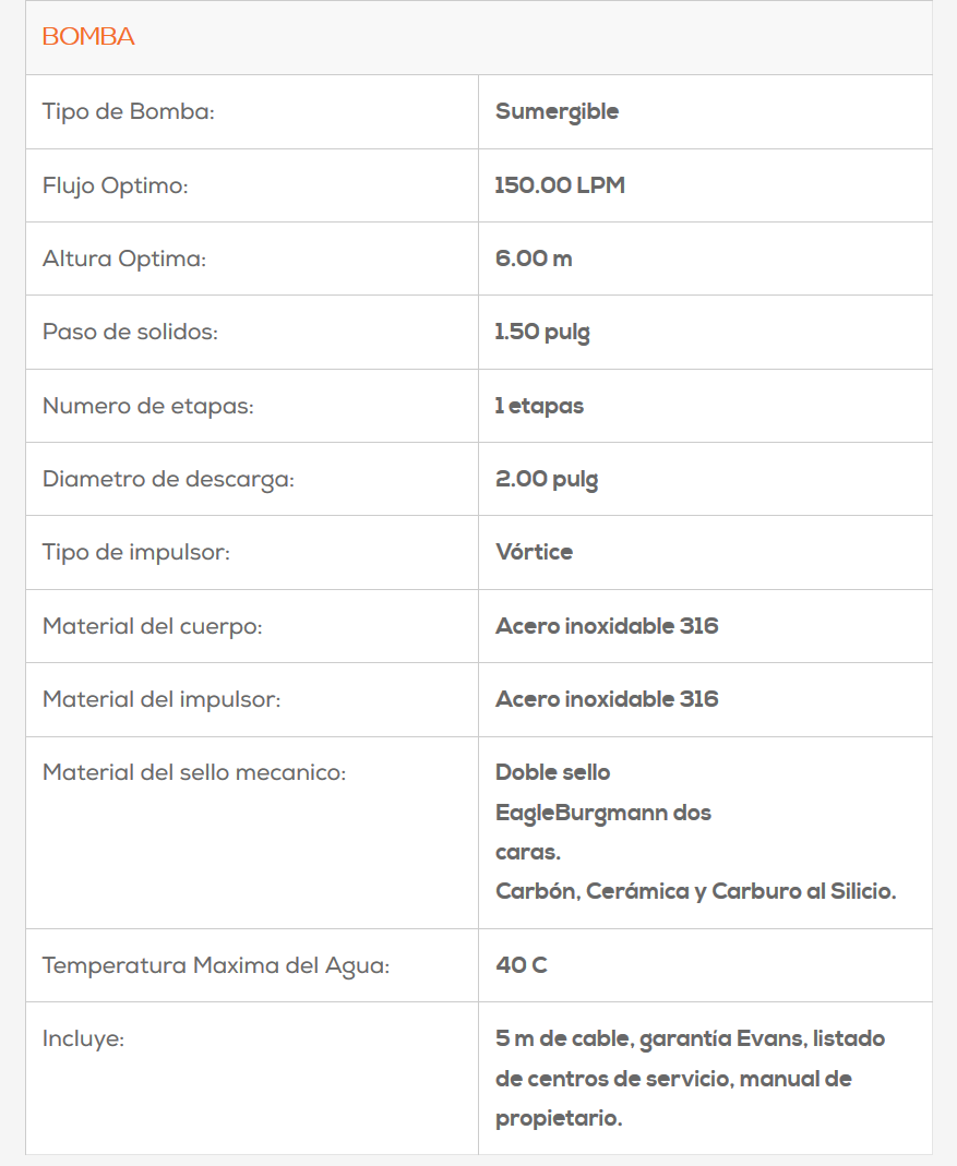 Ideal para manejo de agua salada y /o dulce.