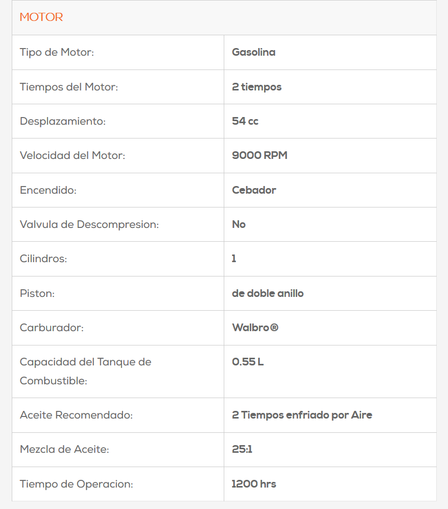 Útil para la tala de árboles, corte de troncos y leños, auxiliar en incendios forestales, poda de árboles frutales y desmontes menores a 2 Hectáreas, mantenimiento urbano, de paisajes, jardines, así como en el sector municipal.