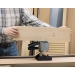 Dispone de un soporte donde dejarla cuando no se use, consiguiendo de esta forma una mayor limpieza, tanto en el área de trabajo como en la propia encoladora.