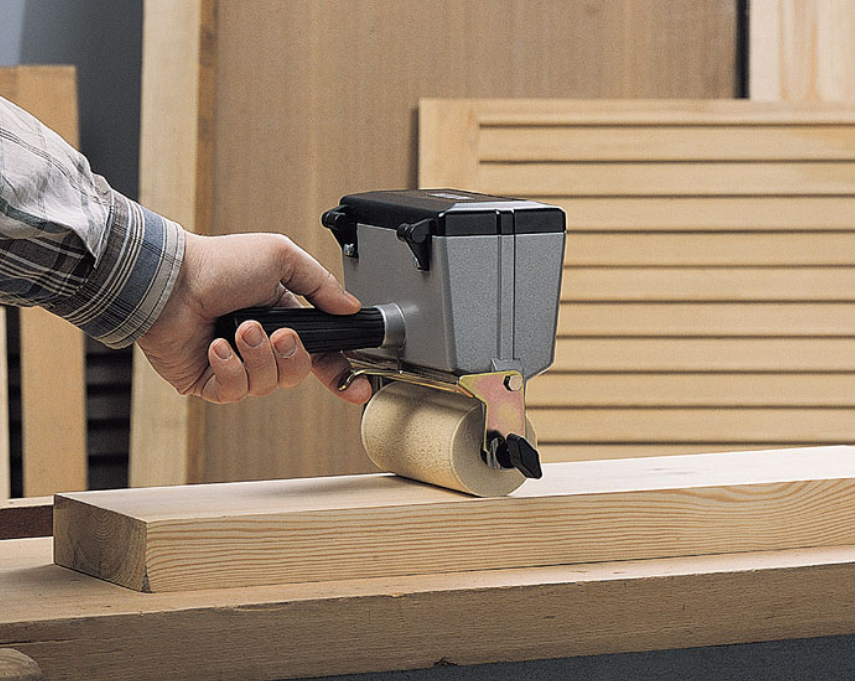 Incluye también un rodillo superior auxiliar que permite encolar listones limpiamente.