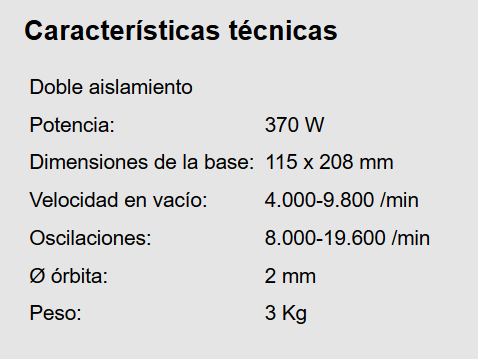 Lijadora orbital de gran rendimiento para pulidos y acabados.