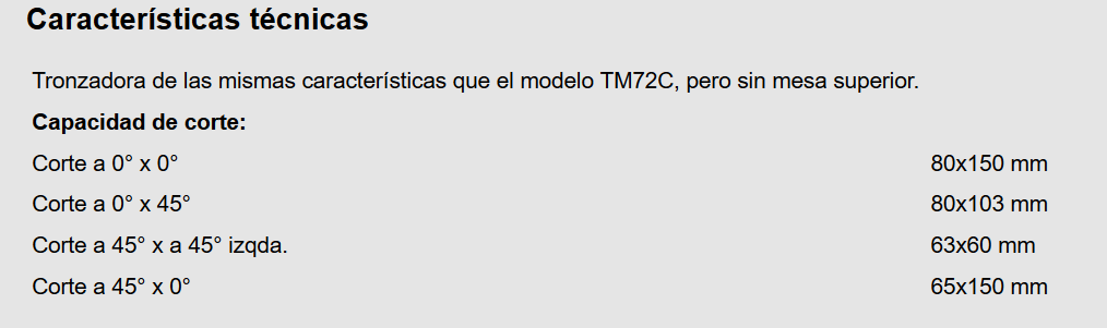Capacidad de corte hasta 150 mm cabezal abatible de 0° a 45°.