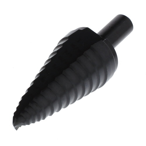 Broca escalonada para realizar cortes más rápidos y sin rebaba, con punta diseñada para penetrar más rápido en el material gracias al recubrimiento con óxido resistente al vapor.