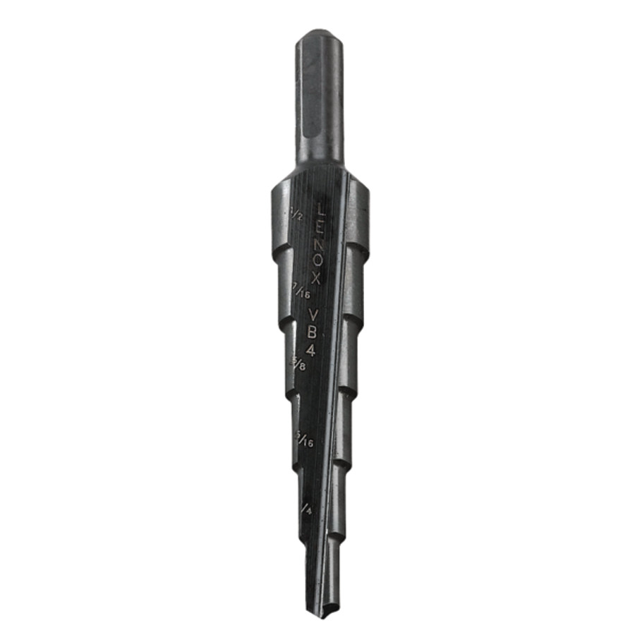 Broca escalonada para realizar cortes más rápidos y sin rebaba, con punta diseñada para penetrar más rápido en el material gracias al recubrimiento con óxido resistente al vapor.