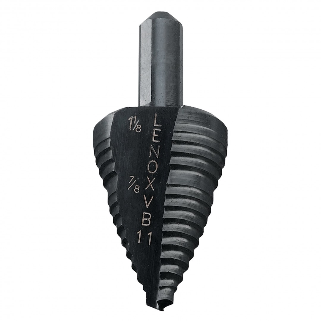 Broca escalonada para realizar cortes más rápidos y sin rebaba, con punta diseñada para penetrar más rápido en el material gracias al recubrimiento con óxido resistente al vapor.