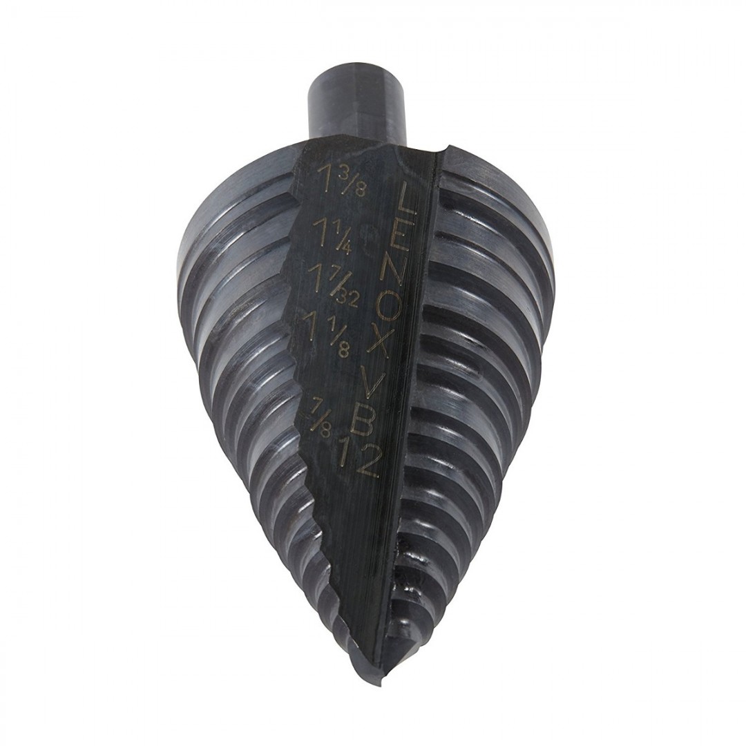 Broca escalonada para realizar cortes más rápidos y sin rebaba, con punta diseñada para penetrar más rápido en el material gracias al recubrimiento con óxido resistente al vapor.