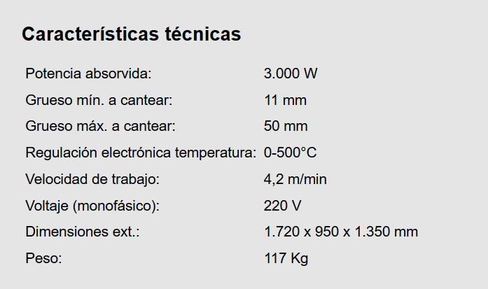 Para el aplacado de cantos preencolados de P.V.C., poliéster, melamina y chapa de madera.