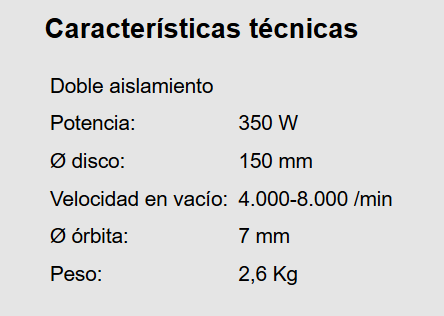 Combina los dos movimientos: rotativo y orbital, gracias a lo cual las superficies trabajadas quedan lisas y sin marcas, realizando trabajos de desbaste con gran rapidez.