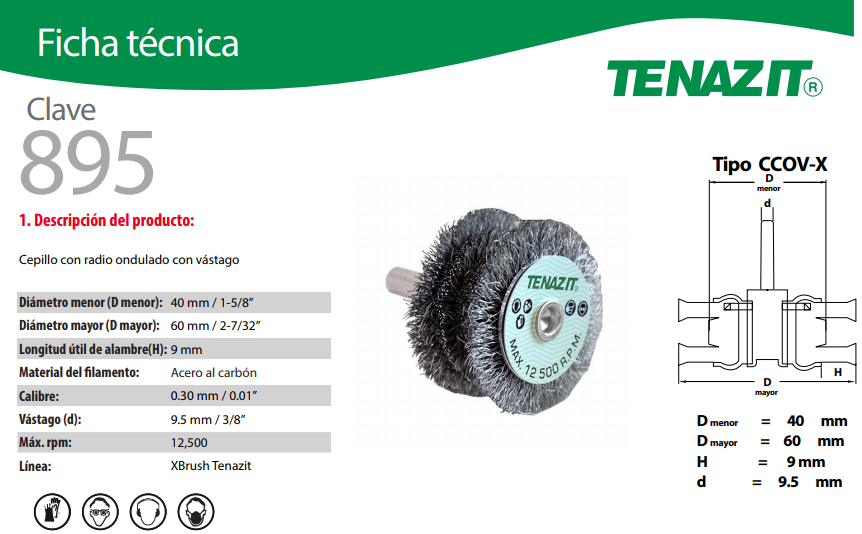 Cepillo ondulado con vastago X Brush para limpieza externa de cuerpos cilindricos. |