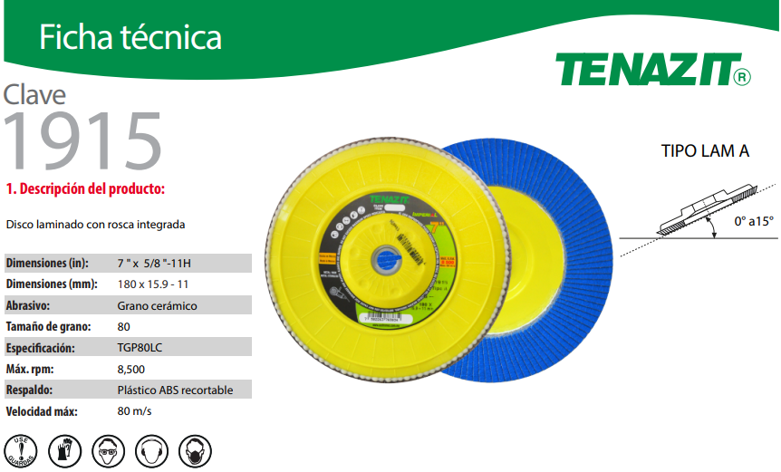 de 180 x 15.9 - 11 con respaldo ABS y rosca metalica integrada