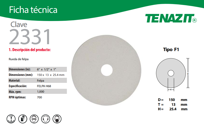 de 115 x 15.9 - 11 con respaldo ABS y rosca metali