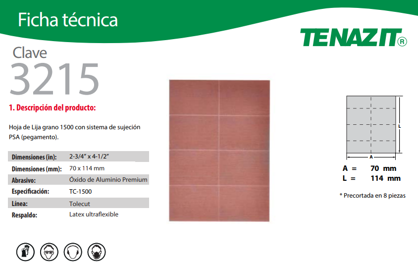 precortada en 8 cuadros de 29 x 35 mm, grano 1500K