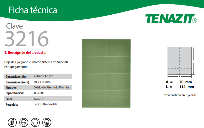 El producto real puede variar a la imagen presentada Hoja de lija PSA, color verde de 70 x 114 mm