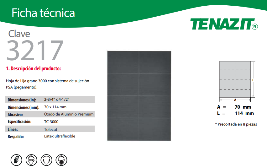 precortada en 8 cuadros de 29 x 35 mm, grano 1500K