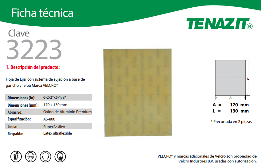 separada en dos de 85 x 130 mm, grano 800K