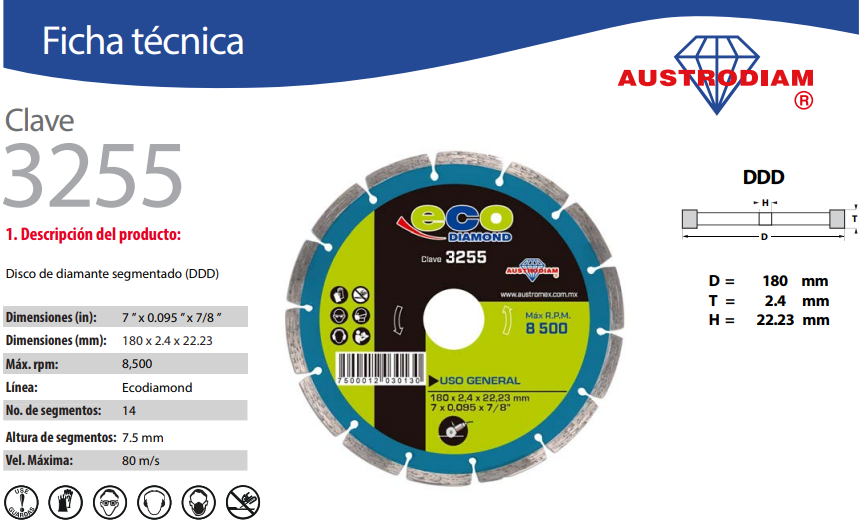 Incluye reductores de 22.23 a 20 mm y de 22.23 a 16 mm