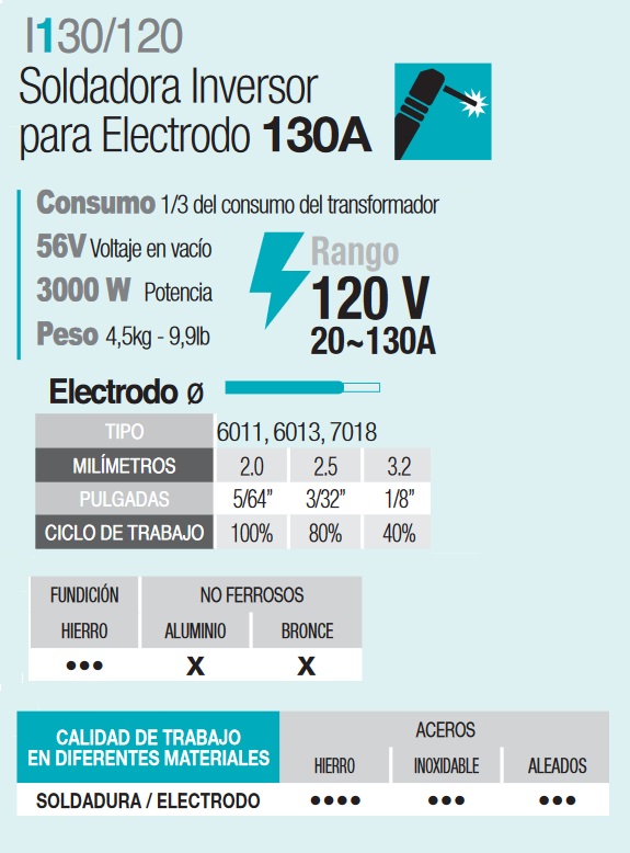 CaracteristicasVoltaje: 120V Monofasica Potencia/C