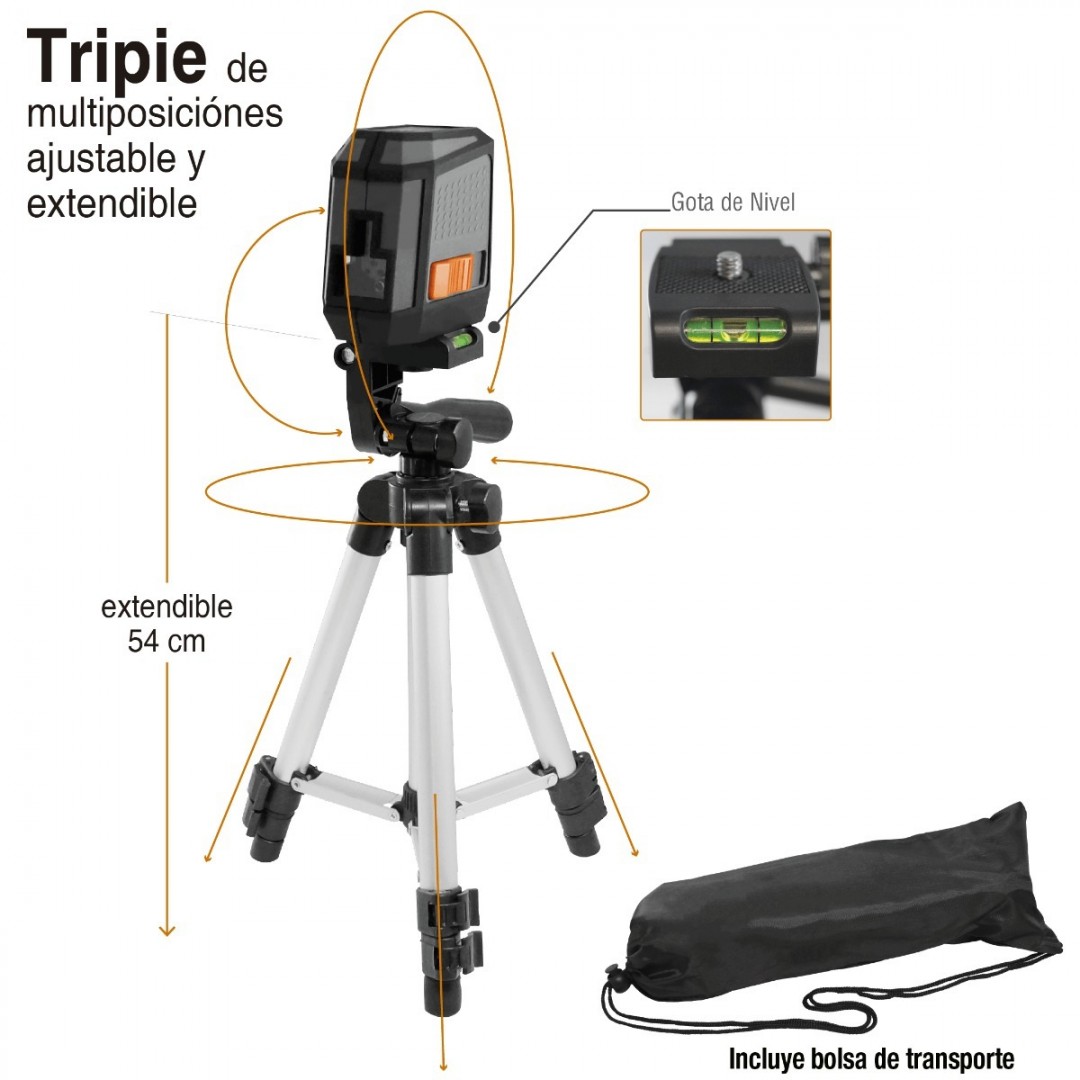 Nivel láser de nivelación automática que proyecta línea horizontal y línea vertical, de sencillo uso.