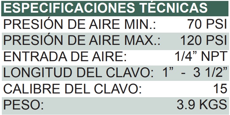 Para Clavillo calibre 18 desde 5/8” hasta 2” 6