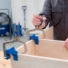 El recorte permite conducir un tornillo de orificio de bolsillo sin quitar la abrazadera.