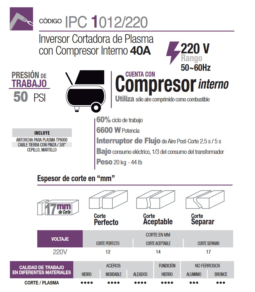Amperaje - 30 - 180 AMPVoltaje - 110 - 220 V 60hzP