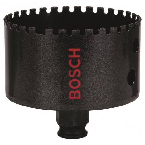 La sierra copa Diamond for Hard Ceramics ofrece el exclusivo adaptador Power-Change de Bosch con el sistema de ejes más rápido del mercado. Permite bloquear y desbloquear la sierra copa y las brocas piloto en un clic.