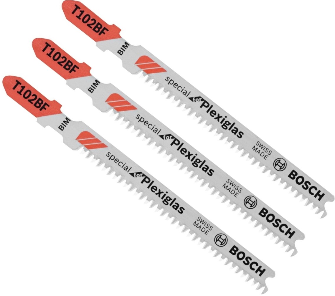 La hoja de sierra de calar T 102 BF Clean for PMMA proporciona cortes rectos y limpios en plástico