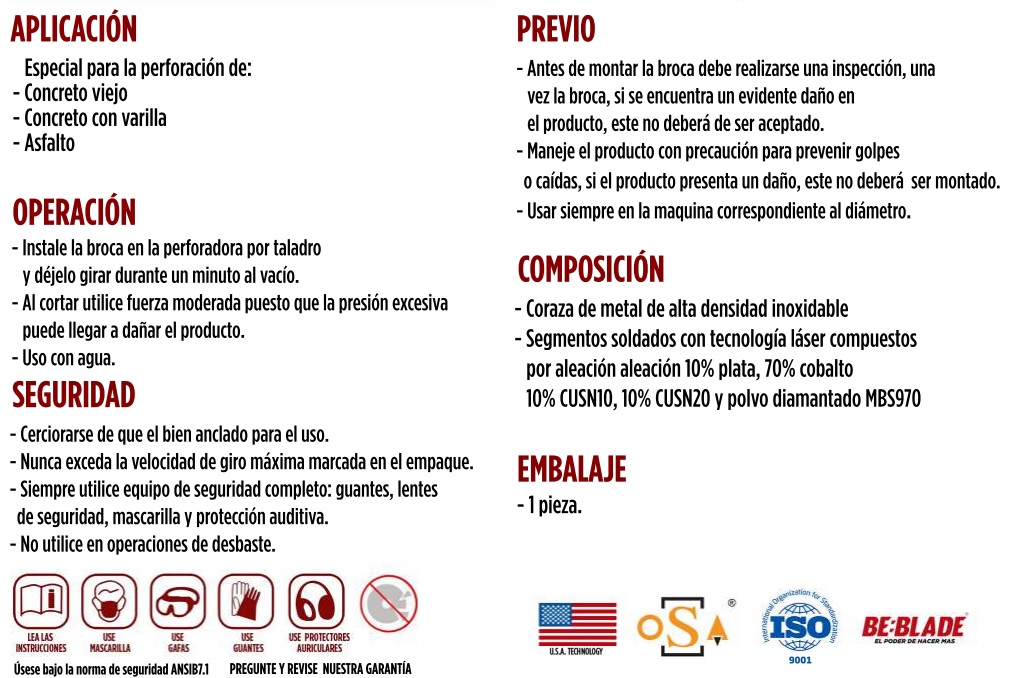 Ideal para: Perforar piedras naturales (mármol y granito).