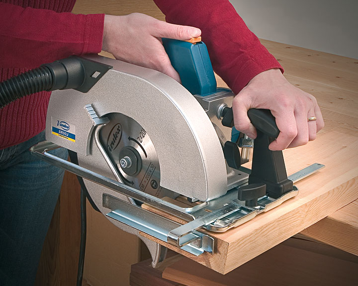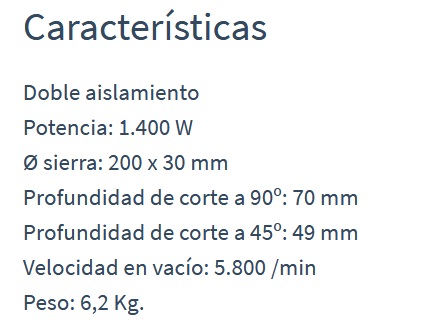Provista de un potente motor de 1.400 W. Permite realizar cortes de hasta 70 mm, siendo regulable la profundidad y el ángulo de corte.