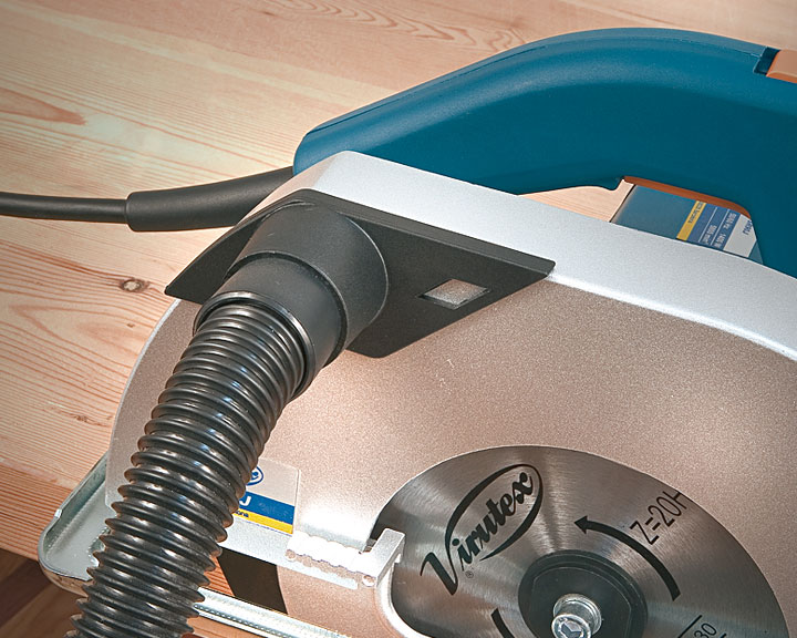Equipada con disco sierra de MD y toma para aspiración externa.