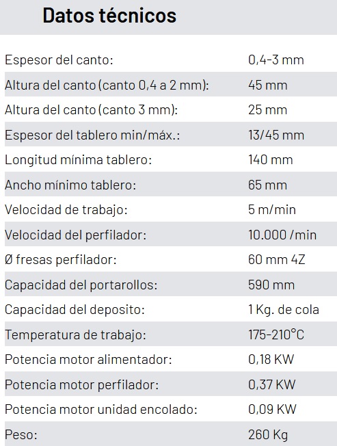 Rodillo encolador motorizado, que permite obtener un pegado perfecto del canto al principio del tablero.