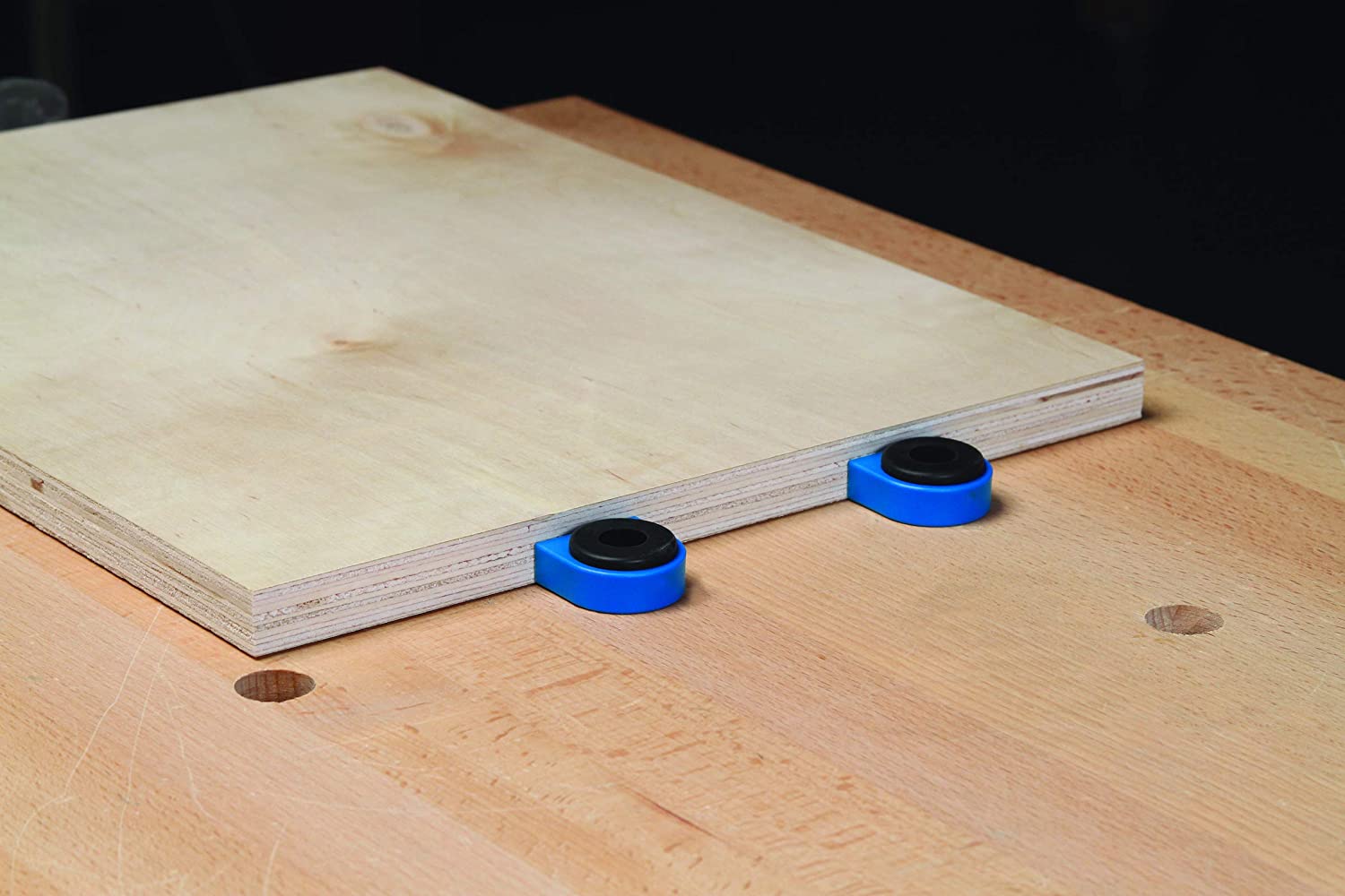 Los frenos de banco presionan en su lugar para una superficie de trabajo sólida y antideslizante