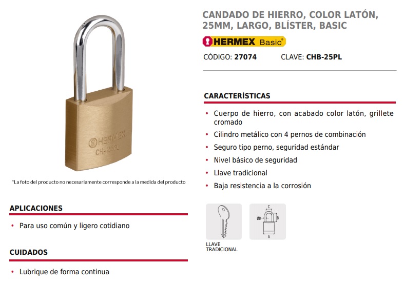 Gancho largo Incluye 4 llaves Cilindro de latón